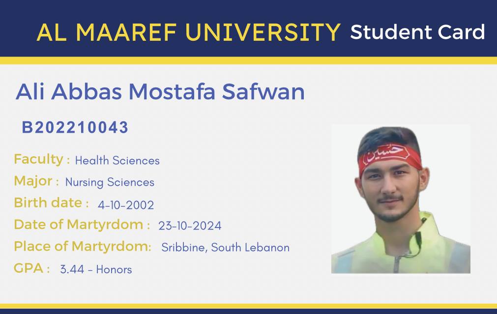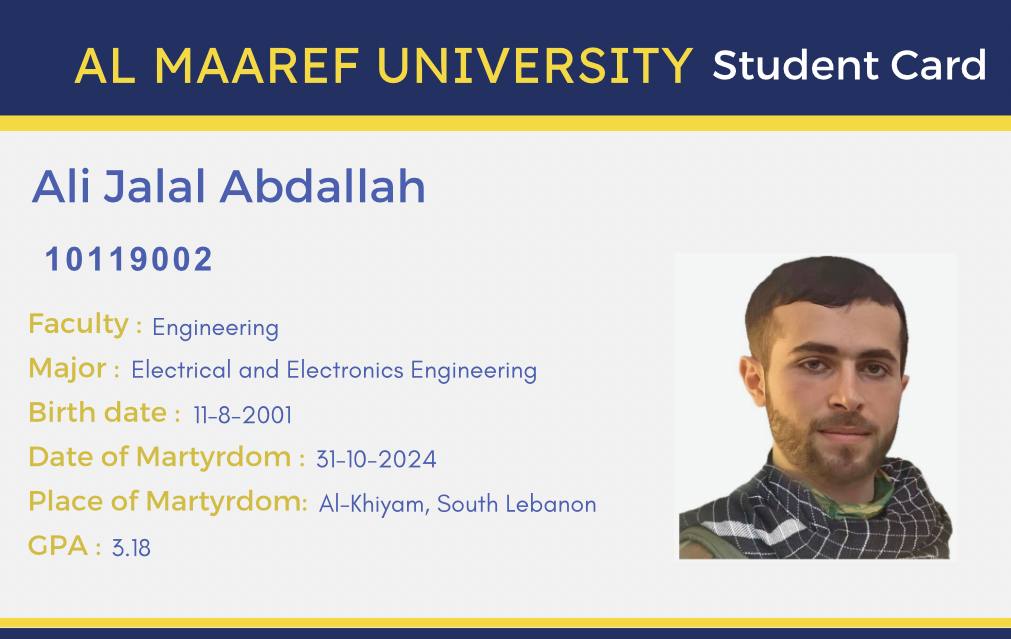 - Final Thoughts – Dr. Termoss’ Message: Ali Abdullah was not just a student, he was the embodiment of a refined human being and a resistance engineer.